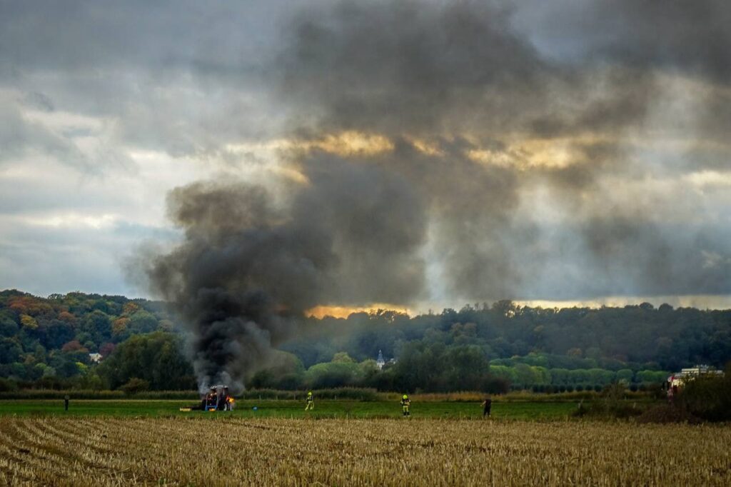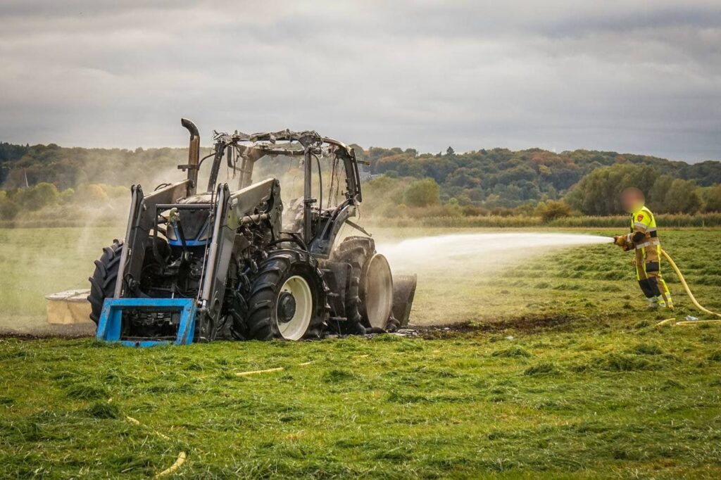 Ooij – Een landbouwvoertuig is maandagmiddag volledig in vlammen opgegaan, dit gebeurde op de Leuthsestraat tijdens maaiwerkzaamheden. De tractor vatte plotseling vlam.